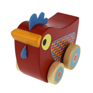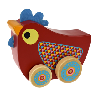 Introducing the delightful Wind n Walk Chicken Music Box from Koala Dream! These adorable music boxes are designed to captivate young hearts - simply pull the Chicken back on its wheels, release, and watch it roll forward while playing a beautiful musical melody. With wind-up wheels and no need for batteries, these music boxes are perfect for small children, as they encourage gripping and gross motor skills. Children will love following the Chicken around the room, enchanted by the gentle melody it plays. Crafted from Timber and painted with child-safe, non-toxic paint, this music box from Koala Dream is a safe and joyous addition to any child's playtime. The Wind n Walk Chicken plays the lovely melody -Old MacDonald Had A Farm.