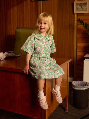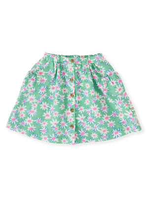Made for twirling through sun-dappled days, this relaxed-fit skirt is true to size with a comfortable elasticated waist and sweet button-down front. Functional pockets are perfect for collecting tiny treasures, while our hand-drawn daisy print brings a touch of wildflower magic. Soft, simple, and ready for everyday wonder.