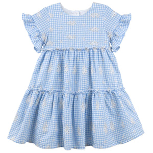 Designer Kidz | Alice Embroidered Gingham Tiered Dress - Blue Check