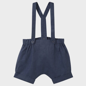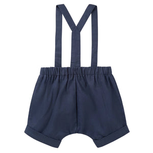 Designer Kidz | Finley Linen Suspender Shorts - Navy
