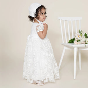 This exquisitely styled bonnet matches the Sophia Christening Dress also by Designer Kidz.
