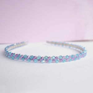 Purples, blues, lavenders, and misty tones combine in the Glitter & Magic Headband to take you on a journey of magical discoveries. Around every corner a mystery waiting to be solved and a spellbinding enchantment ready to burst into glitter and gems.