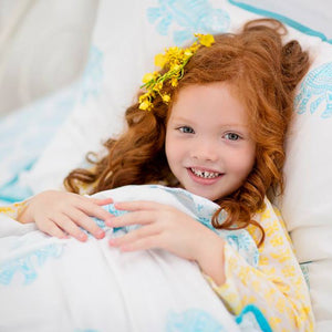 For the child who adores Elephants this set is printed with aqua elephants on a white background.
