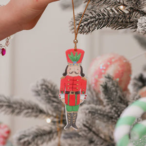 Known as a symbol of good luck, our wonderful decorative toy soldier wears a uniform of red and green with golden epaulettes and a characteristic little moustache. A sweet decoration to add to the tree this Christmas. Decorations are made from acrylic.