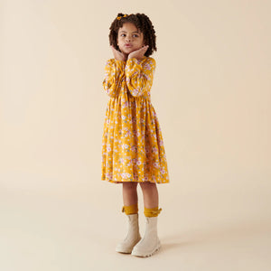 Millie Floral Poodle Long Sleeve Dress - Honey Gold