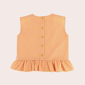 Olive and the Captain's frilly boxy singlet in Pink Lemonade pairs perfectly with the Lemonade bike shorts.  Soft pink and lemon gingham singlet with single lemon O+TC logo print.