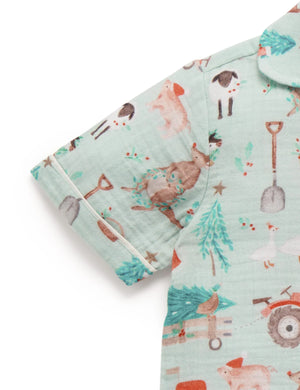 Short Crinkle PJ Set - Farmyard Christmas Crinkle
