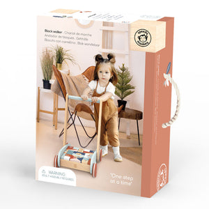 A wonderful walker for your little ones first steps! This toy Helps with standing and walking, developing stability and essential balancing skills.The 27 colourful blocks included serve as weight for the wagon when pushed, whilst inviting fun stacking and building. This toy is crafted from sustainably sourced wood from FSC® certified forests and coated with non toxic paint.