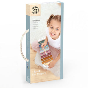 A fine colourful xylophone with metallic keys and a single piece wooden mallet that your little one will enjoy. Totally safe as it doesn't have any sharp edges. It offers the full scale of eight musical tuned bars for an authentic musical experience. Each coloured key in this musical toy matches their assigned notes for easy learning. This toy is crafted from sustainably sourced wood from FSC® certified forests and coated with non toxic paint.