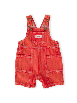 A classic shape with a playful twist, this relaxed-fit denim favourite is true to size and made for little explorers. Functional wrap-around pockets invite treasures and trinkets, while adjustable straps with vintage-style brass clasps offer room to grow. Leg snaps (up to size 2) make for fuss-free changes. A timeless staple that pairs with everything—and goes everywhere tiny feet may wander.