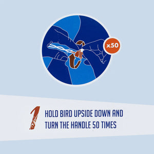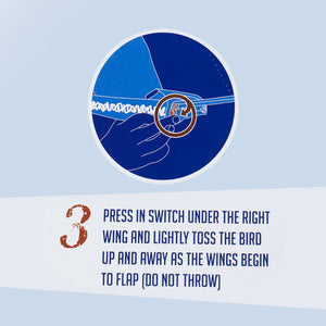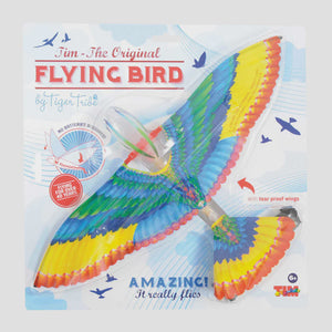 Tiger Tribe's Tim the Flying Bird flaps his wings like a real bird as power is released from the elastic system. Once flapping is complete, Tim locks into glide mode and gently glides back down to earth.